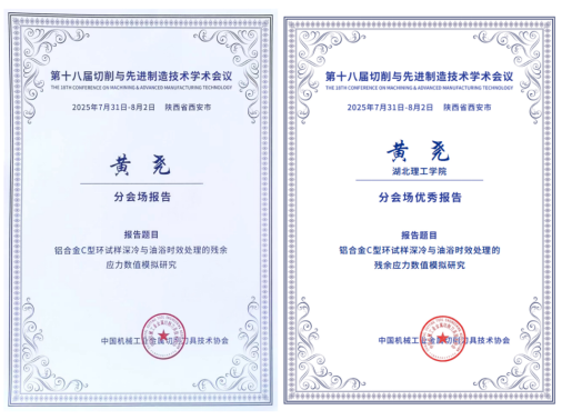 7月31日—8月2日,伟德国际1949官网青年教师黄尧赴陕西西安参加第十八届切削与先进制造技术学术会议,凭借其在先进制造工艺优化及多物理场耦合数值模拟领域的创新性研究成果,荣获“分会场优秀报告”,充分展现了学院在相关学科领域的科研实力与学术影响力。
