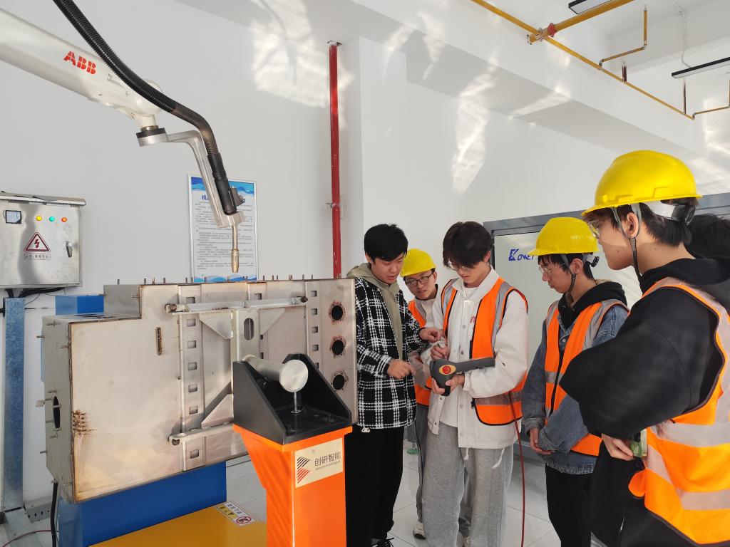 此次实习,实训基地为学子量身定制了进阶式实践课程。学习场景从焊花飞溅的机器人焊接工站,到吨位千钧的智能冲压生产线;从精密检测的飞轮壳数字化车间,到科技感十足的新能源汽车总装线。企业导师现场解密工艺诀窍,演示智能装备操作,分享精益管理案例。同学们穿梭于自动化产线之间,围绕“工艺流程”“产线布局”“智能运维”等开展观摩学习,在真实场景中完成从知识接收到能力迁移的链接。