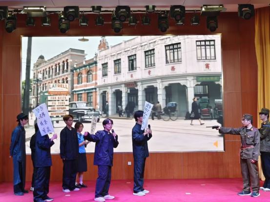 舞台剧《破晓》以五四运动为背景、进步青年为主角,穿透时空的界限,让剧里剧外的青年们以话剧的方式进行了一场深层次的交流,传递着时代的接力棒。