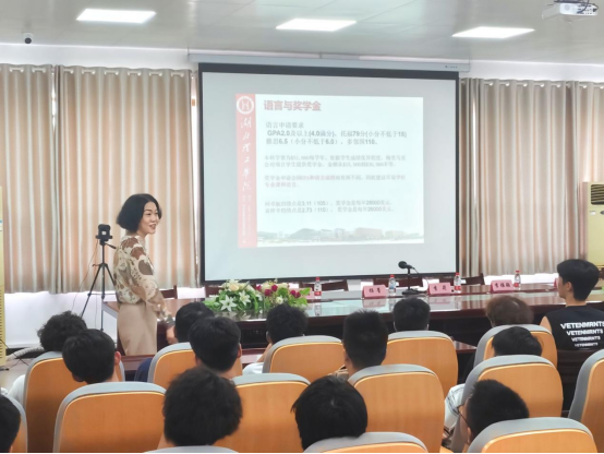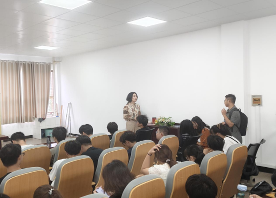 李莉围绕中外合作办学项目展开讲解,介绍其与美国梅里马克学院(波士顿附近)的合作背景、院校概况及优质团队,并重点阐述项目在美校申请、就业竞争力与考研率上的优势,帮助新生清晰认知所学专业与项目的核心价值。她提到,希望同学们能尽快适应校园生活,主动融入集体,在夯实知识基础的同时积极探索专业领域;既要培养独立思考能力,勇于参与创新实践,又要注重修身立德,实现全面发展。