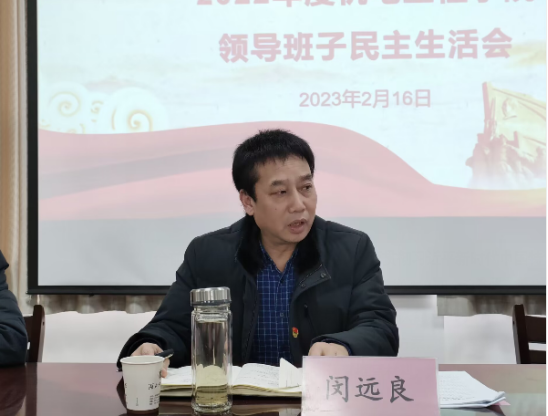 会上,杨菁同志会上通报了上年度党史学习教育专题民主生活会整改措施落实情况和本次民主生活会征求意见情况,并代表学院领导班子作对照检查发言,重点对照六个方面,认真查摆存在的突出问题,深入挖掘问题产生的根源,有针对性地制定整改措施。随后,杨菁带头作了个人对照检查发言,班子成员徐庆华、胡涛、陶晶、徐赐军、夏国宏逐一作对照检查材料开展了严肃认真的批评与自我批评,班子其他同志进行批评帮助。大家在发言中既谈思想又谈工作,既查摆问题又提出整改措施,深刻剖析“六个带头”方面存在的问题及原因,直面在学院建设、服务师生、履职尽责等方面的问题与不足,明确整改措施和努力方向,体现了对事业、对同志高度负责的精神,达到了统一思想、提高认识、增进团结、振奋精神的目的。