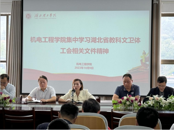 10月16日下午,伟德国际1949官网在K1-414会议室集中学习宣传贯彻习近平总书记关于教师节的重要指示精神、《习近平关于工人阶级和工会工作论述摘编》和湖北省教科文卫体工会相关文件精神,学院领导班子和全体教职工参加了学习。