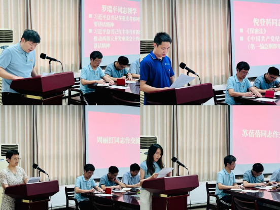 罗瑞平同志领学习近平总书记在主持召开新时代推动西部大开发座谈会上的重要讲话精神、习近平总书记在重庆考察时的重要讲话精神;倪登科同志领学《保密法》《中国共产党纪律处分条例》(第一编总则部分);机械设计制造党支部周丽红、机械电子与机器人党支部苏蓓蓓同志分别就自身经历、当下工作现状、未来展望作交流发言。