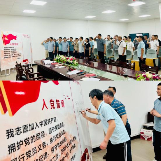 全体党员教师重温入党誓词,并陆续在签名板上签字,表示始终铭记政治生日,不忘入党初心。