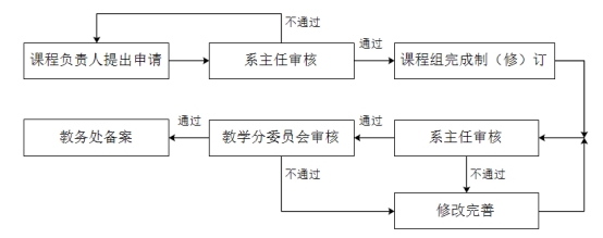 (3)课程教学大纲的制(修)订完成后,课程负责人填写《课程教学大纲制(修)订申请与使用审核表》,说明修订原因及修订内容,提交系(部)主任审核。系(部)主任审核通过后送教学分委员会审核。