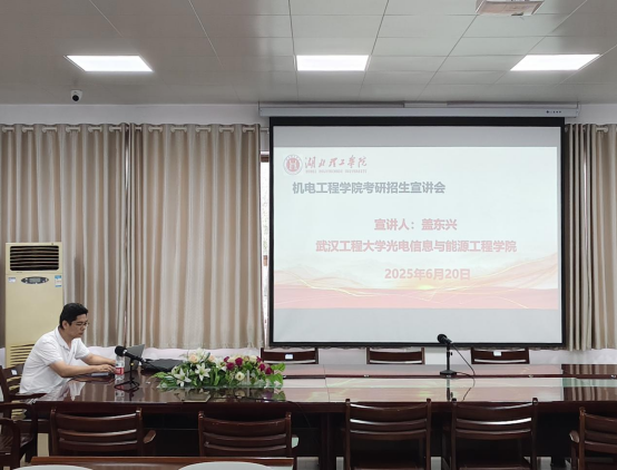 6月20日下午,武汉工程大学光电信息与能源工程学院盖东兴教授走进伟德国际1949官网,在K1-414会议室开展了一场干货满满的考研宣讲会,为有意向报考研究生的学子们带来了详细的院校与专业介绍。