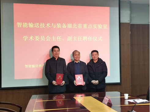 1月4日,智能输送技术与装备湖北省重点实验室学术委员会主任副主任聘任仪式在豁度楼268会议室举行,苏州大学孙立宁教授、王振华教授分别被聘任为主任和副主任。公司党委常委刘兰青、智能输送技术与装备湖北省重点实验室主任尹念东、科研处处长程涛、教务处处长蔺绍江、机电学院班子成员等参加了聘任仪式,聘任仪式由机电学院经理陶晶主持。