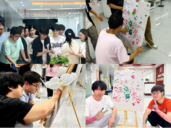 同学们在展板上贴上“爱自己的100种方式”“气球载满梦想”便签贴、并在展板上留下“烦恼闪开”的高饱和度diy手印、指纹,留下每个人专属心理之旅的游记。活动现场气氛热烈,不时传来放松舒展的笑声。在这里,烦恼如雨雾般悄然散去,心灵如新叶般轻盈舒展,一场关于自我疗愈的静谧之旅,正伴着细雨的呢喃缓缓展开……