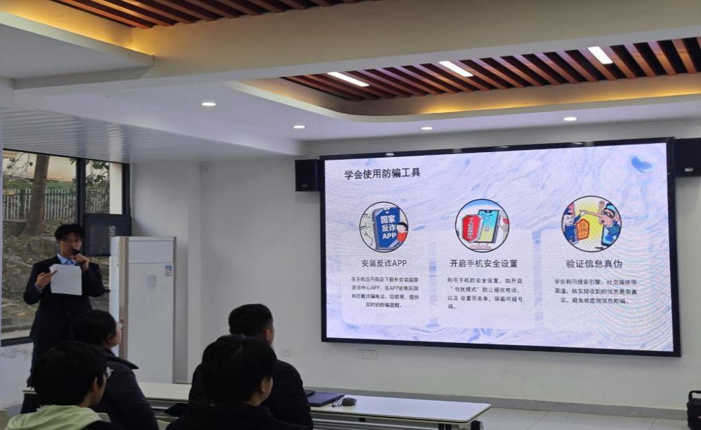 活动中,主持人宣讲校园安全主要集中在防范电信诈骗、宿舍用电与防火方面,每年诈骗分子都会炮制花样翻新的诈骗手段,来吸引、诱导老员工,如:网络代购、手机刷单、网络交友谎称家人疾病借钱、游戏充值等。因此在生活中我们要做到“三不一多”未知链接不点击,陌生电话不轻信,个人信息不泄露,转账汇款多核实。